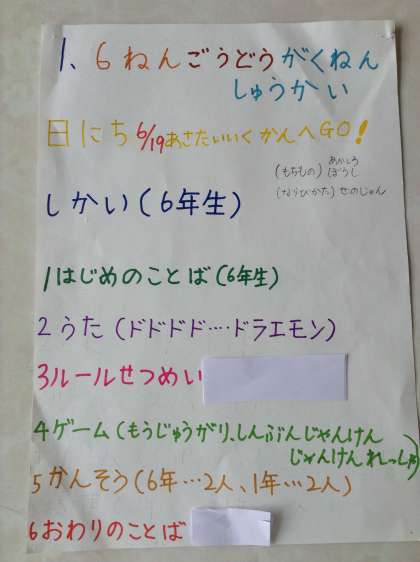 6年生のお兄さんお姉さんと、3つのゲームで楽しみました。色々なことを優しく教えてくれました。6年生が大好きなこどもたちです。