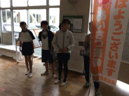 企画委員会で、毎朝児童玄関に立ってあいさつ運動をしています。通りかかった子達から、大きな声であいさつが返ってきます。