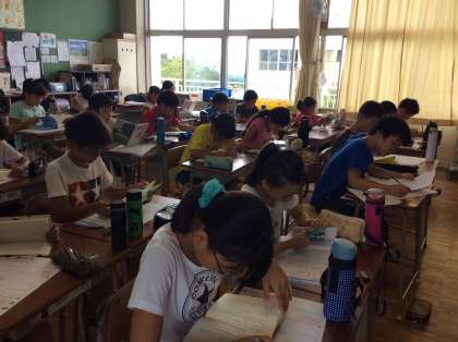 5年生も読書感想文に取り組みました。暑い中ですが、集中しています。