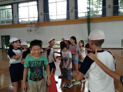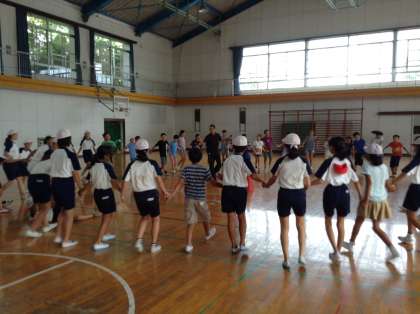 今日はキャンプファイアーで踊るフォークダンスの練習をしました。足がおぼつかないときがありましたが、楽しそうに練習していました。