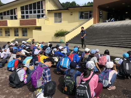 無事に野外活動センターに到着しました。入所式の様子です。