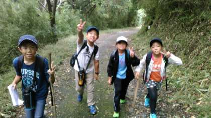 ウォークラリーの真っ最中です。ポイントを通過し、もうすぐ頂上です。