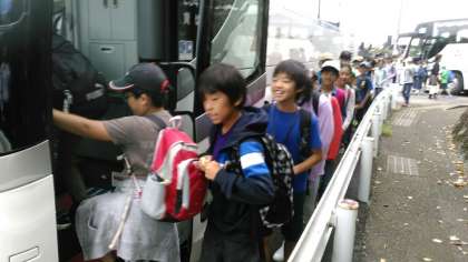 6年生は、静岡市方面へ社会科見学に行きます。出発式を行い、いよいよ出発です。