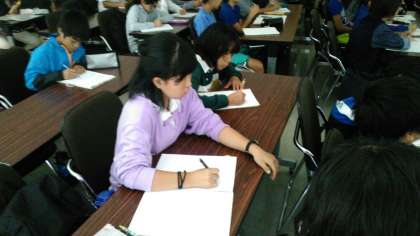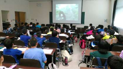 地震防災センターに到着しました。地震や津波の仕組みや怖さ、守るためにどうしたらよいか真剣に説明を聞いていました。