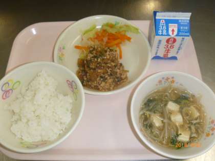 野菜の苦手な子が多いクラスのようですが、今日はピリ辛ソースをからめて食べていて残っていませんでした。