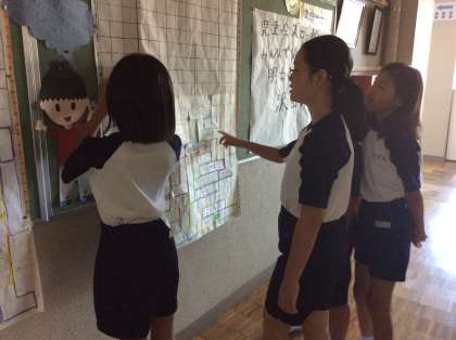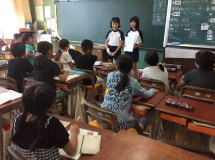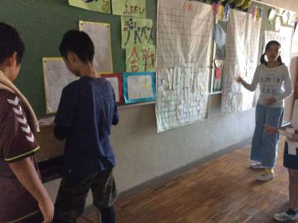 企画委員会ではあいさつ運動を盛り上げるために、「テトパズ合戦」という活動を進めています。少しずつ全校に浸透してきていますが、企画委員会の子ども達が、「もっともっと盛り上げたい!」、と下級生の教室へ励ますためにお邪魔しました。