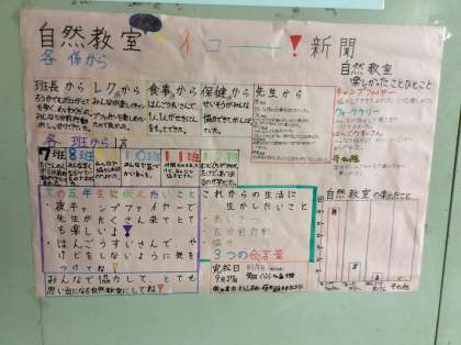5年生は、自然教室の振り返りを行っています。学年の掲示板には、自然教室新聞が掲示されました。