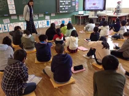 5年生は英語で「場所」の学習が始まりました。テーブルの上、箱の中、本の下、メガネのそばなど、どこにあるか、の言い方の練習をしました。