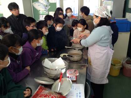 5年生は、家庭科「食べて元気に」で、栄養について学習しています。今日は栄養士さんが、だしの取り方を教えてくれました。だしを取った後は、だし入りの味噌汁とだし無しの味噌汁の飲み比べをしました。この学習を生かして、今度は自分たちでだしを取って味噌汁を作ります。一緒にご飯も炊くので楽しみにしています。