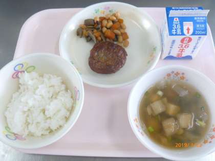 ・ごはん ・牛乳 ・さばはんぺん ・五目煮豆 ・麩汁