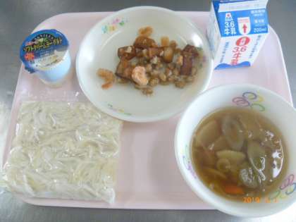 ・うどん ・牛乳 ・ちゃんこうどん ・小えびとポテトの唐揚げ ・ヨーグルト