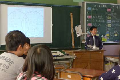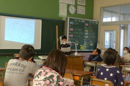 国語の「手で食べる、はしで食べる」の学習を発展させて、文化について調べました。 そして、ベン図やピラミッドチャートを用いて、複数の文化を比較して発表しました。