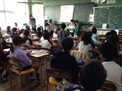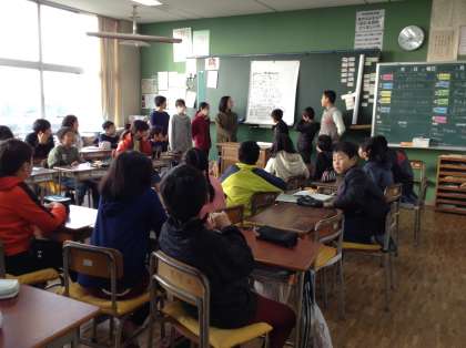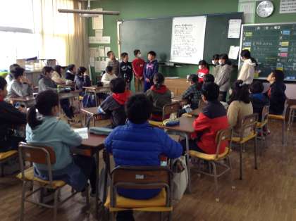 五年生では、六年生を送る会に向けて、各学年にお願いに行ったり、歌を教えに行ったりしています。今日は各学年に、全員で歌う替え歌を教えに行きました。