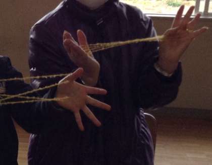 あやとりは、名人と一緒にやっています。「できたよ」と嬉しそうに自分の作品を見せてくれました。