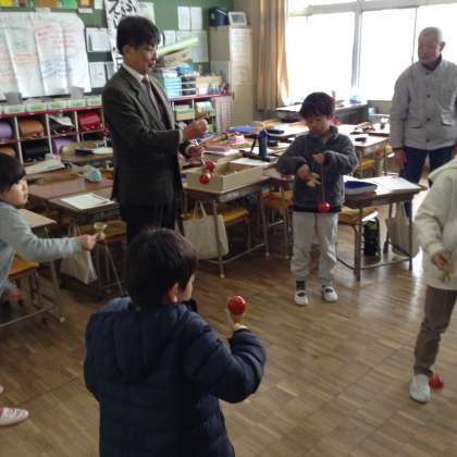 けん玉では、名人だけでなく子ども同士で教え合う姿も見られました。