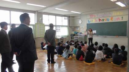 金岡小学校で、金岡三校合同の学校評議員会が開かれました。授業を参観した後、1年間の学校の取組や子どもたちの表れについて話し合われました。
