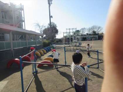 2月18日(月)の沢っ子塾、お外で楽しく自由遊びを行いました。
