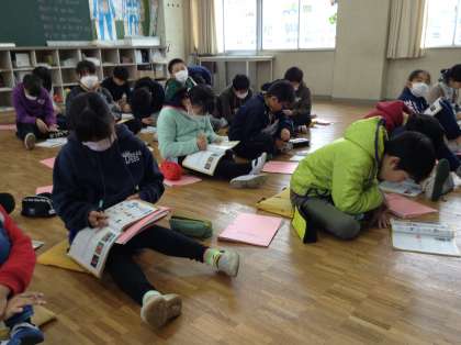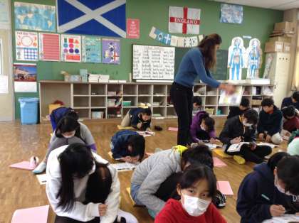 5年生の今日の英語は、「ヒーロー」についてでした。ヒーローを通して、「〜が得意」という言い方を学習しました。