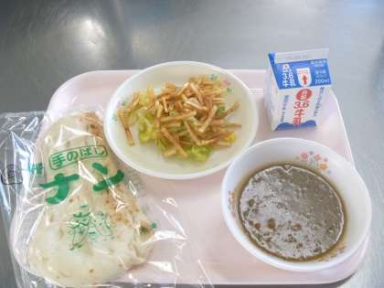 ・ナン ・牛乳 ・キーマカレー ・パリパリサラダ