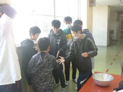 6年2組では揚げパンジャンケンが開催されていました。