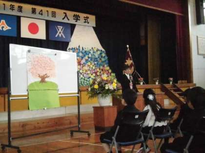 校長先生からのお祝いの言葉をしっかり聞いていますね。