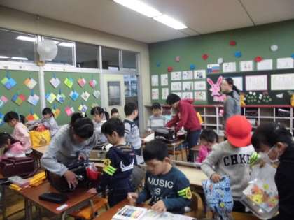 朝からよく働く6年生です。1年生のお世話も完璧です。