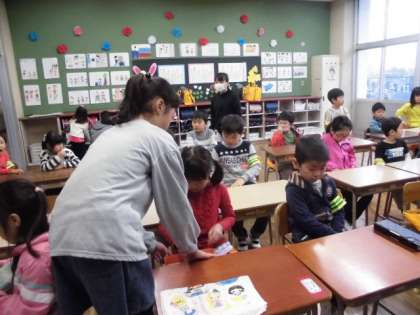 朝からよく働く6年生です。1年生のお世話も完璧です。