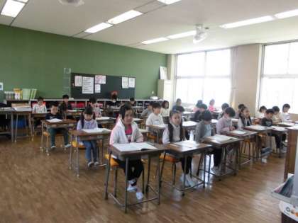 2・4・6年生は、テストをしています。けっこう難しそうです。がんばれー!!
