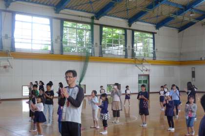 6年生のタッタ実行委員が、手本となって練習を進めています。