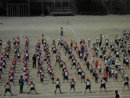 全校で踊るダンスの練習を行いました。とてもすてきなダンスですね。