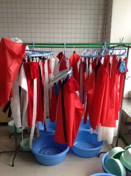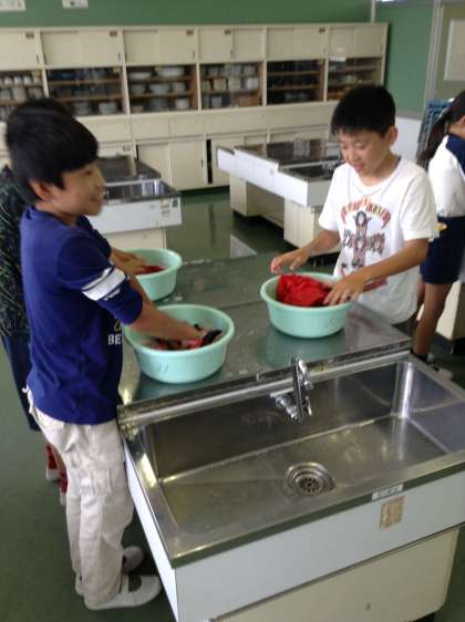 運動会の応援係の子ども達は、きょう昼休みに自分の使ったはっぴや軍手・はちまきを
