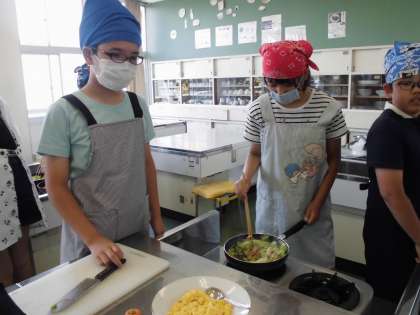 6年生が、卵を使った料理を作っています。おいしそうです。