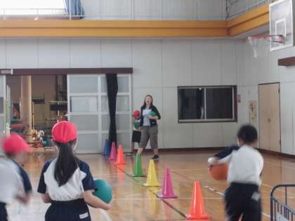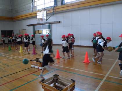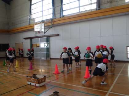 2年生は体育館でボール運動をしています。