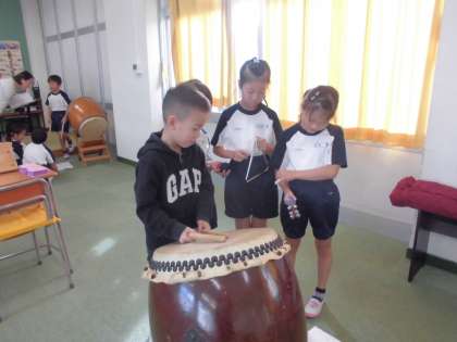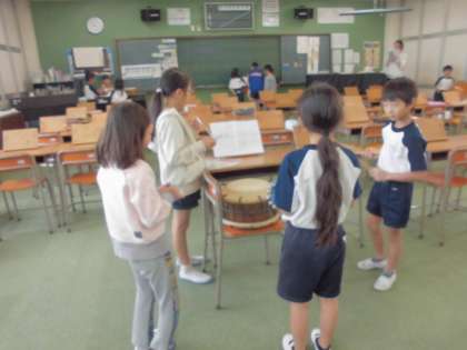 お祭りにふさわしい音楽をグループで考えています。