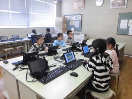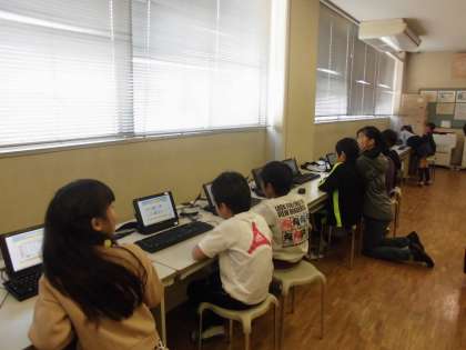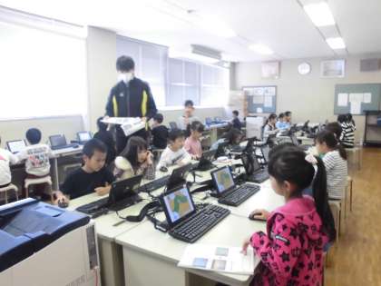 ありがとうカードを作っています。1年生でもパソコンを使いこなしています。
