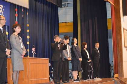 新型コロナウイルス感染症拡大防止の対策を行いながら、令和元年度の離任式が行われました。