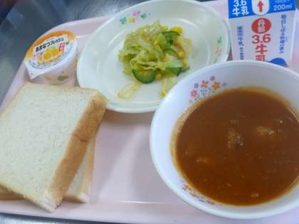 ・食パン ・牛乳 ・ビーフシチュー ・ボイルドサラダ ・デザート(あまなつゼリー)