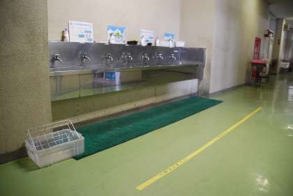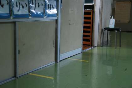 本校におきましても、写真にありますように、水道での密を防ぐためのラインを引いたり(水道での飛沫感染を防ぐための処置ですが、このことにより歯磨き時は他のスペースが密になり混雑が避けられず、歯磨きをしないこととしました)、朝の入室時の混雑を防ぐためのソーシャルディスタンスを確保するラインを引いたり、できるだけ接触感染のリスクを下げるためトイレのスリッパを床に置いたり(今までは棚に出し入れしていたので、スリッパを手で持ち上げしていました)、手指消毒のアルコールを各教室前に設置したりと、数々の対策を講じております。今後も最善を尽くせるよう、常に対策を検討しながら対応してまいります。御意見等ございましたら、御連絡いただけると幸いです。