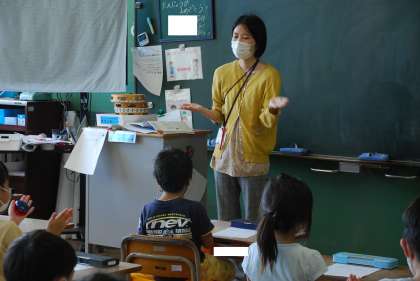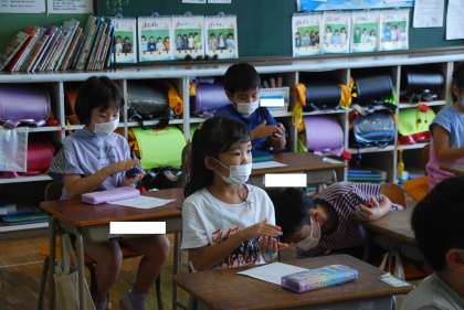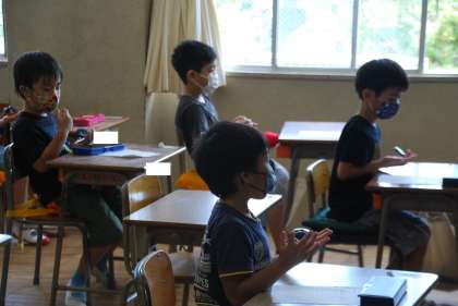 音楽の授業ですが、飛沫のリスクを考慮して、カスタネットの授業です。