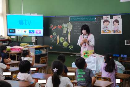 9月8日、講師を招いて「やさいパワーのひみつをみつけよう」と題して、野菜の魅力について1年生が学びました。オクラの筋をとる作業では、一生懸命取り組む児童の姿がとてもほほえましかったです。
