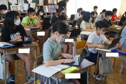 クロームブックを使用しての授業の様子です。