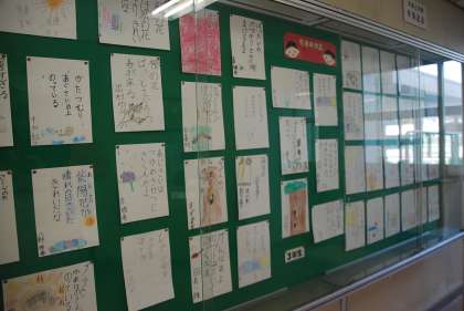 事務室前の掲示板が、3年生の俳句に替わりました。ご来校の際には、児童の傑作をぜひご覧ください。