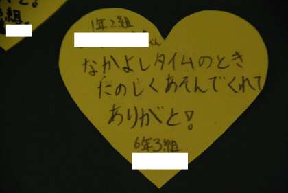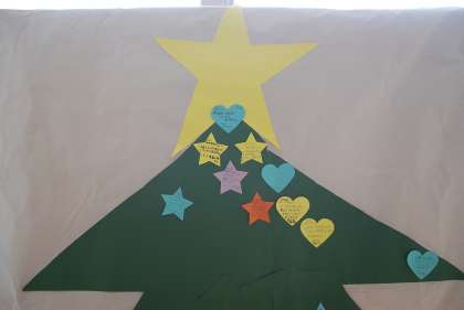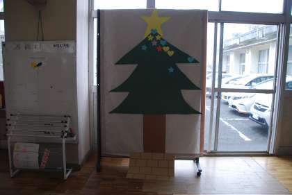 12月17日まで、企画委員会主催「ありがとう、君に」企画が行われます。内容は、何かありがとうを伝えたい相手についてカードに書き、スマイル通りにあるクリスマスツリーに貼っていくというものです。早速「なかよしタイムのとき、たのしくあそんでくれてありがと!」など「ありがとう」の気持ちがが貼られていました。