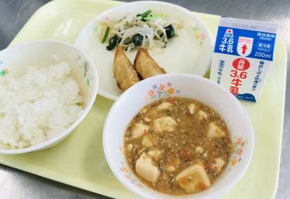 ・米飯 ・牛乳 ・麻婆豆腐 ・ぎょうざ ・塩ナムル