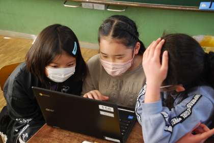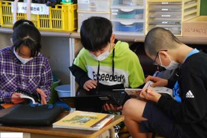 新型コロナウイルス感染症感染防止のため、ペア活動やグループ活動は極力控えていますが、子供の学びを止めないためにも、必要のあるときは10分以上活動しないことを徹底しています(報道では以前、「マスク無しで1m以内15分以上」と言われていたことがありましたが、オミクロン株の感染力が高いと言うことなので10分以上と判断しました)。鼻を被うことの徹底も図っています。