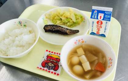 給食では丸ごと食べられるように油で丸揚げにしましたが、給食室中にいわしの煙と強い臭いが充満していました。これで沢田小学校の邪気を払う事ができたと思います。