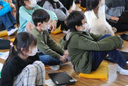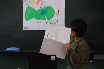 1組、2組が合同で、発表会を行っていました。今まで自分が調べたことをしっかりと説明することができていました。
