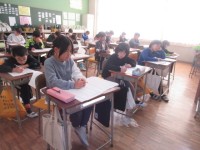 新出漢字の練習をしています。指で書き順を確認してから漢字ドリルに書き込みます。1日4文字進みます。