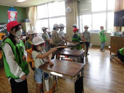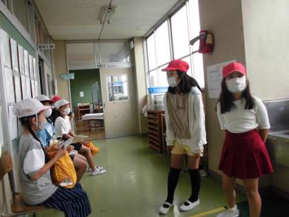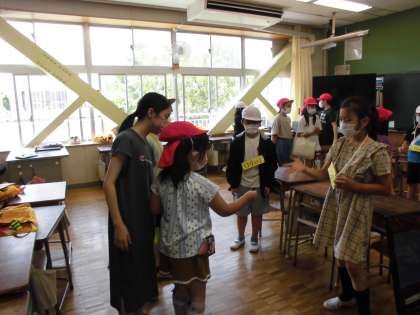 ペアでお店をまわっていきました。どのお店もにぎわっています。中が密にならないように、廊下に椅子を出し、待っている間にルールの説明をする班もあります。
