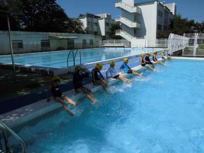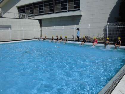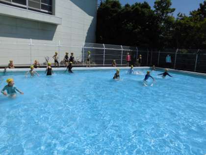 先週雨で入れなかったプールに入りました。初めての学校のプールでしたが、水を怖がることもなく、みんな楽しそうでした。